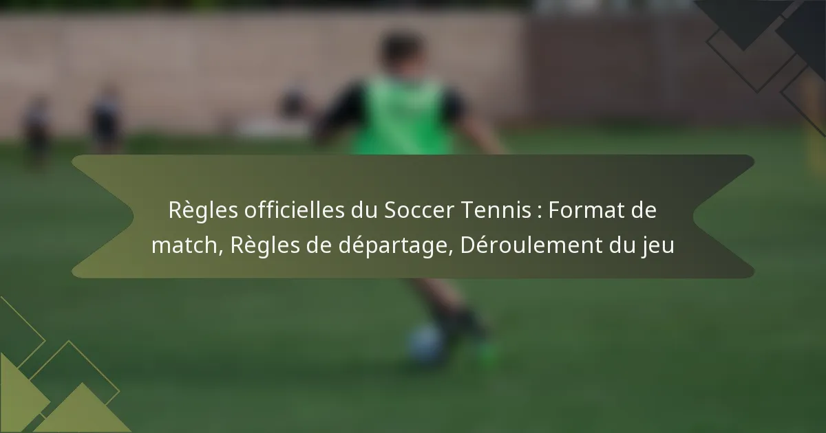 Le soccer tennis est un sport engageant où deux équipes s’affrontent sur un terrain divisé par un filet, utilisant un ballon de football en formats simples ou doubles. Le format du match comprend des règles spécifiques de marquage et d’arbitrage pour promouvoir le fair-play, tandis que les procédures de départage garantissent un vainqueur décisif par des méthodes telles que la mort subite. Comprendre le déroulement structuré du jeu, du service à la marque de points, est essentiel pour les joueurs afin d’améliorer leur expérience compétitive.