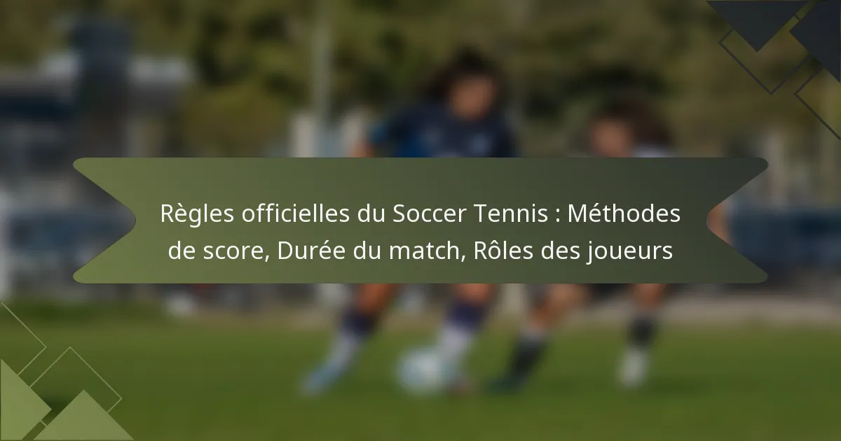 Le soccer tennis combine des éléments de football et de tennis, utilisant un système de points où les joueurs ou les équipes marquent en remportant des échanges. Les matchs peuvent être joués en simple ou en double, durant généralement entre 30 et 60 minutes, et impliquent des règles de score spécifiques. Les rôles des joueurs sont essentiels, chaque participant ayant des responsabilités définies qui impactent la stratégie et la performance globale de l’équipe.